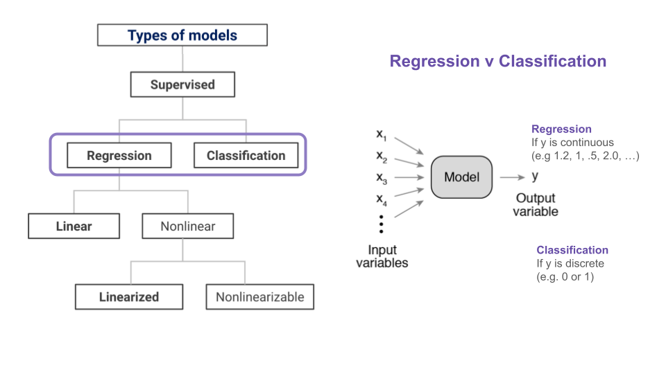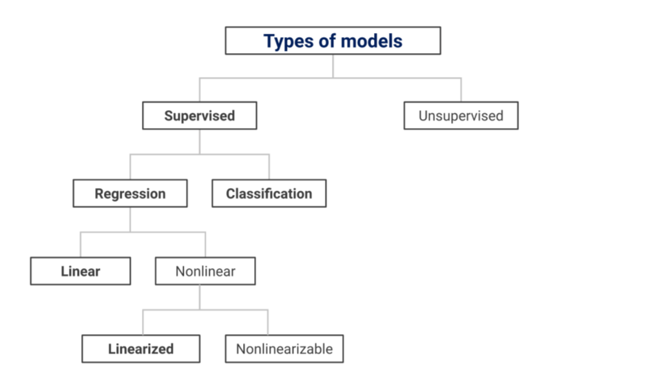 As a starting point, we can divide statistical models into two types of learning (so called because we are trying to “learn” something about the data):