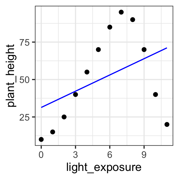 lm(formula = plant_height ~ 1 + light_exposure + I(light_exposure^2) +