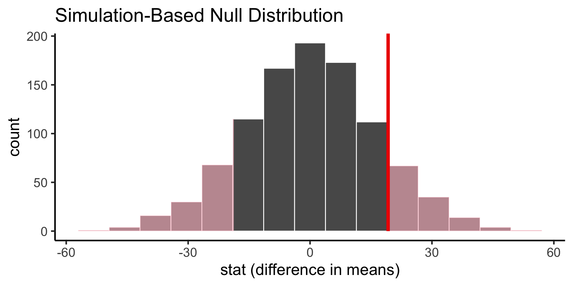 Note that obtaining our observed value is implausible under the null, but not impossible. In other words, our decision to reject (or not) could be wrong!