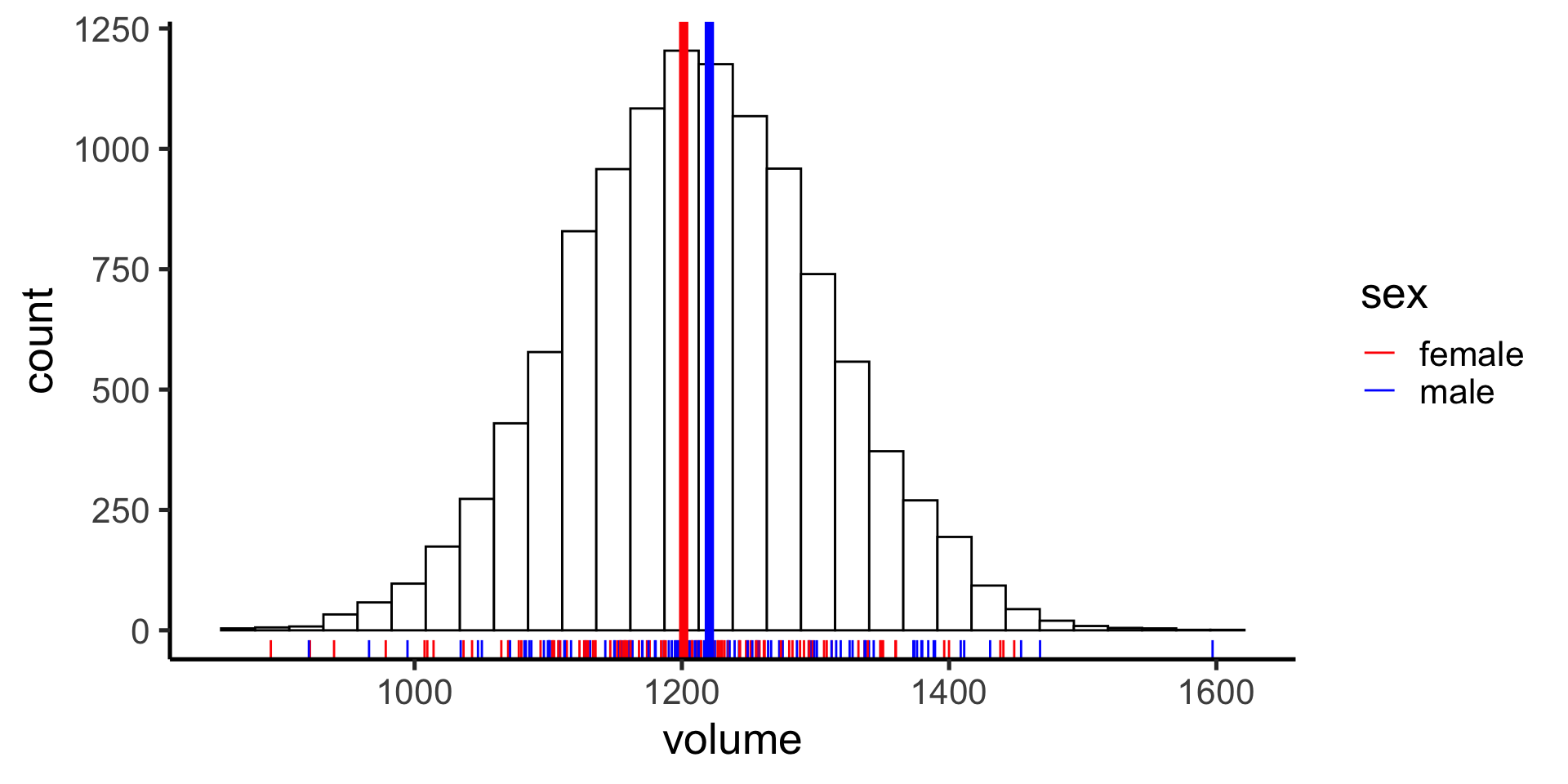 To determine whether the brains of male and female Penn students differ with respect to the mean, we can use a framework for decision making called hypothesis testing.