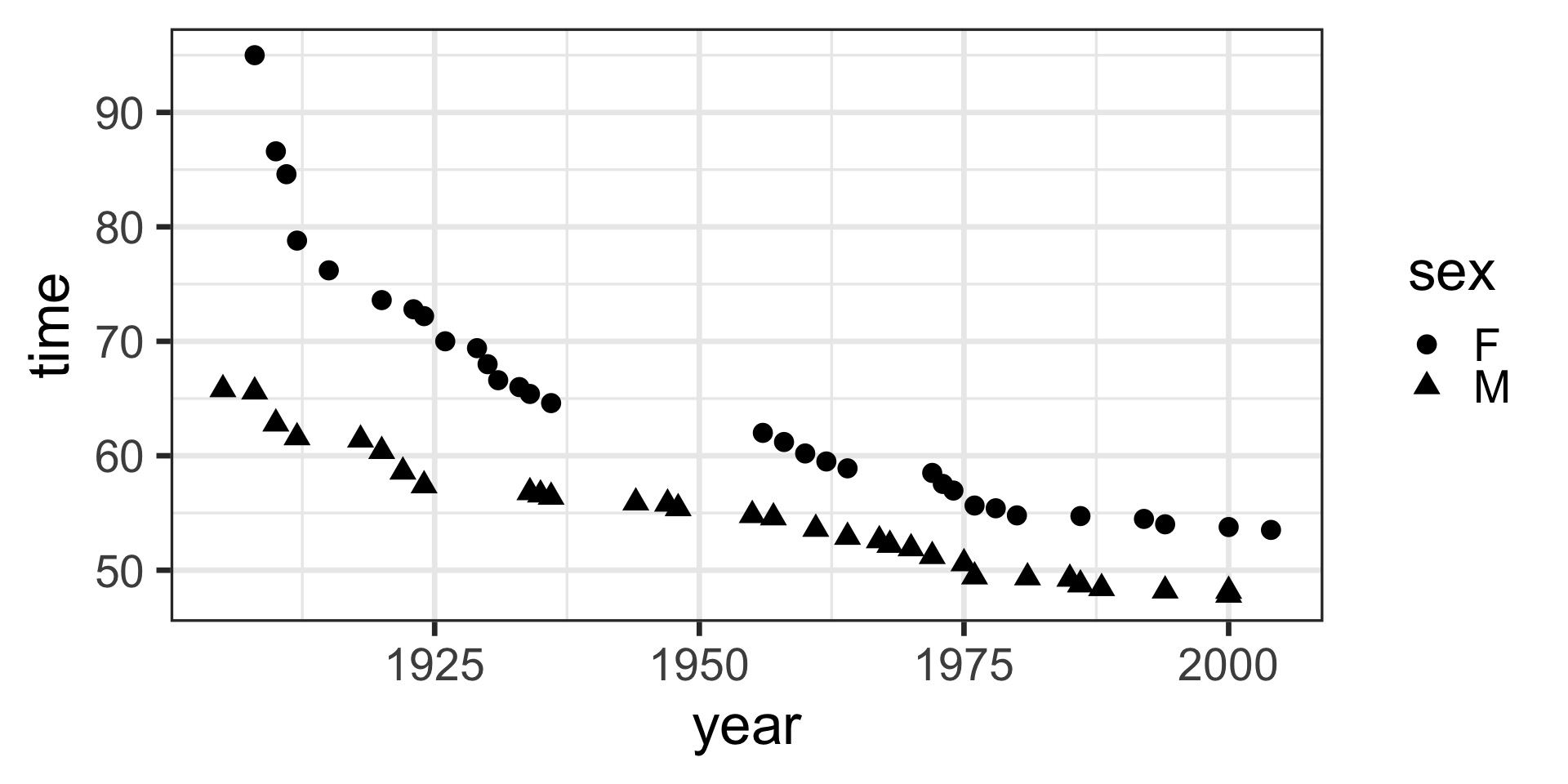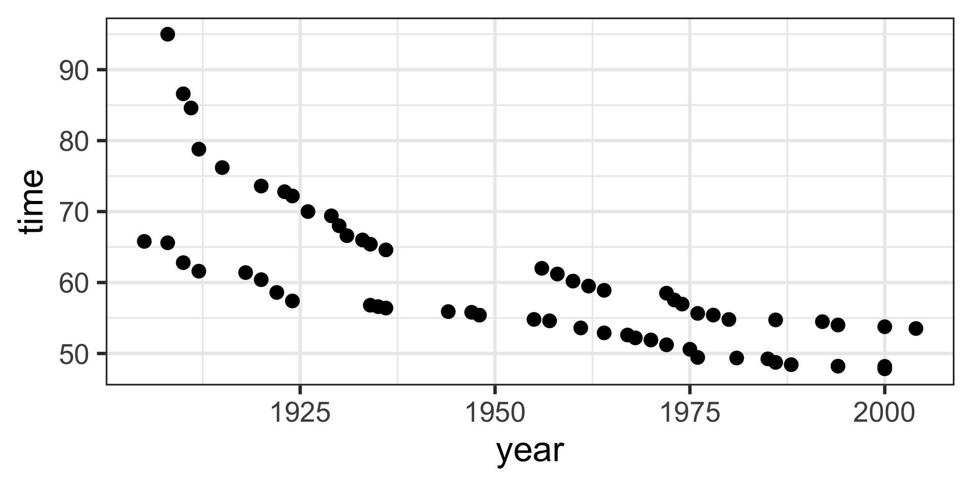SwimRecordsHow have world swim records in the 100m changed over time?
