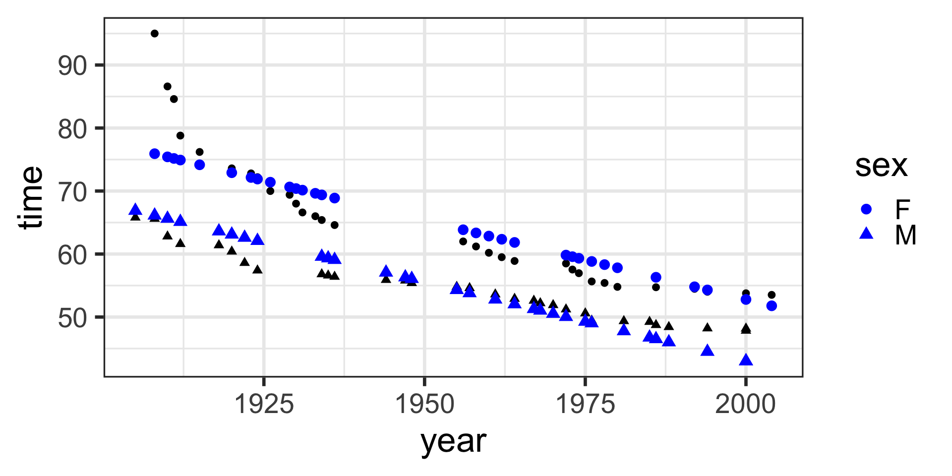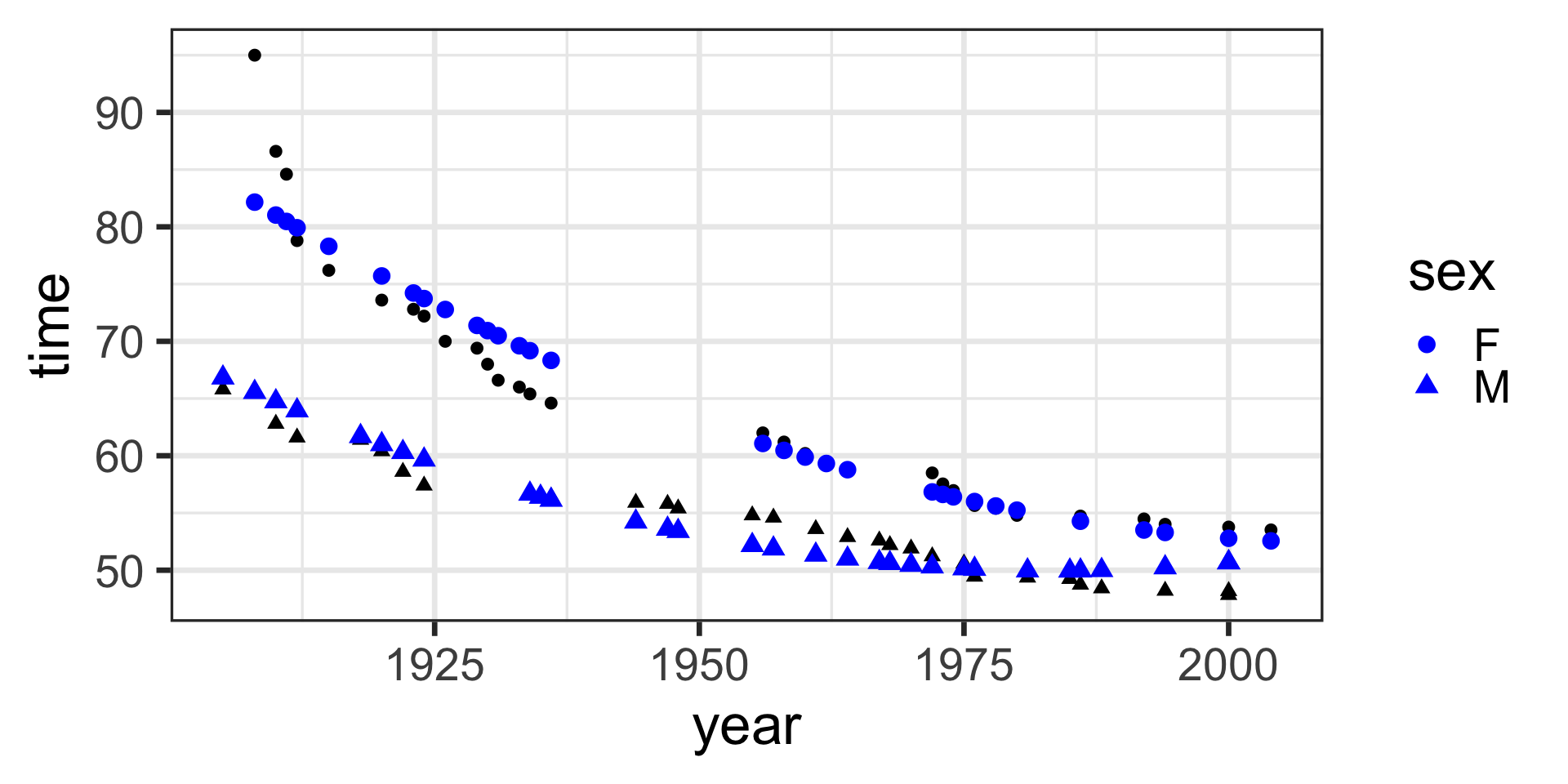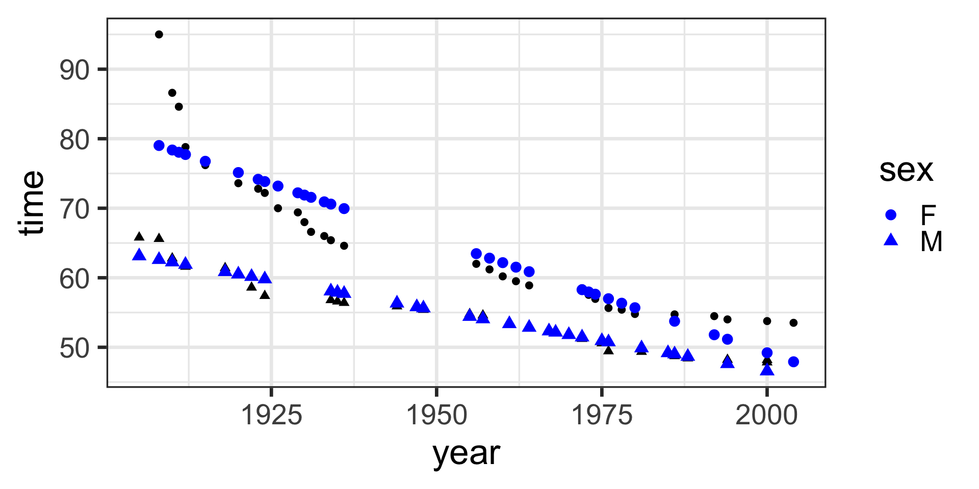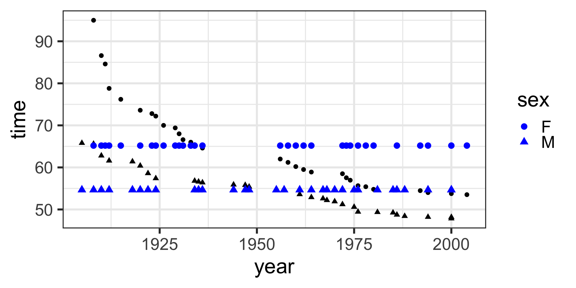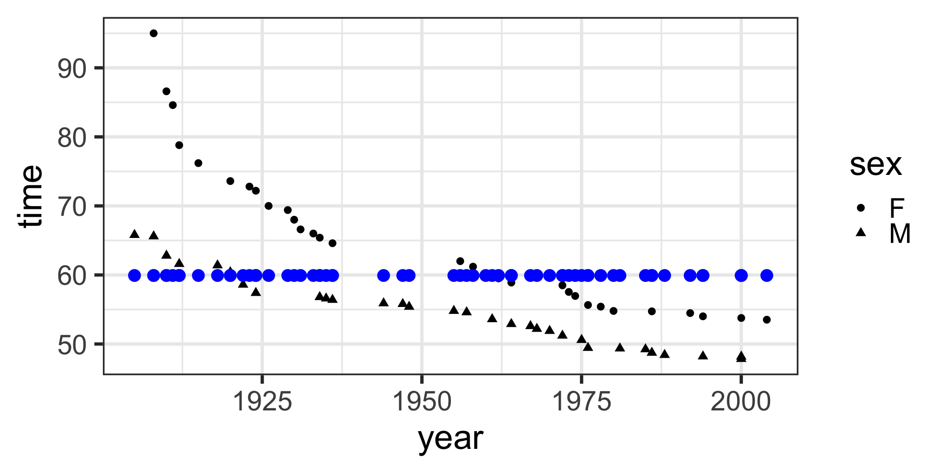 Plot the swim records data, then use your model specification worksheet to specify the model.