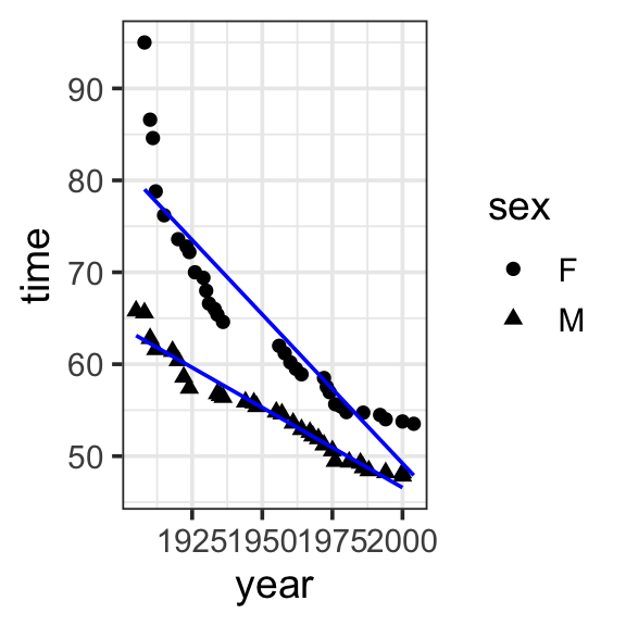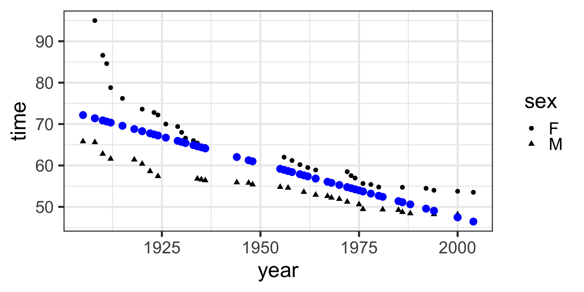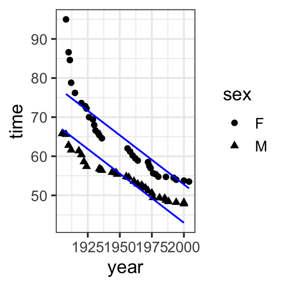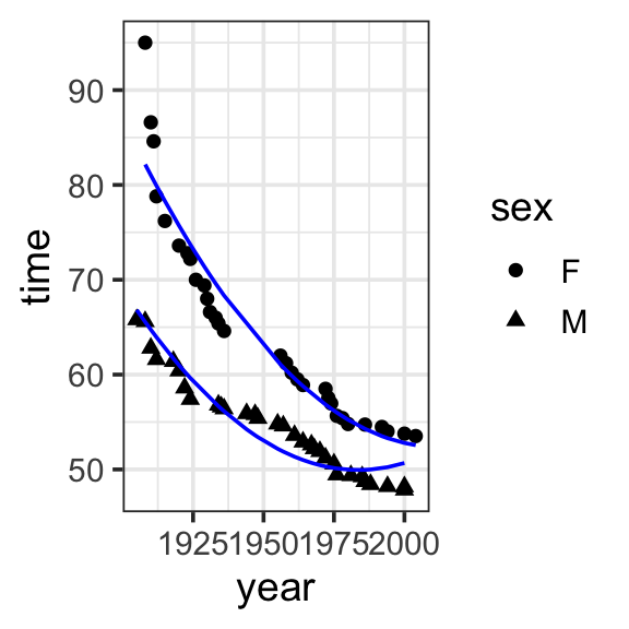 y ~ 1 + year * gendery ~ 1 + year * sex + I(year^2)Model specification (this week): specify the functional form of the model.Model fitting: you have the form, how do you estimate the free parameters?Model accuracy: you’ve estimated the parameters, how well does that model describe your data?Model reliability: when you estimate the parameters, you want to quantify your uncertainty on your estimates