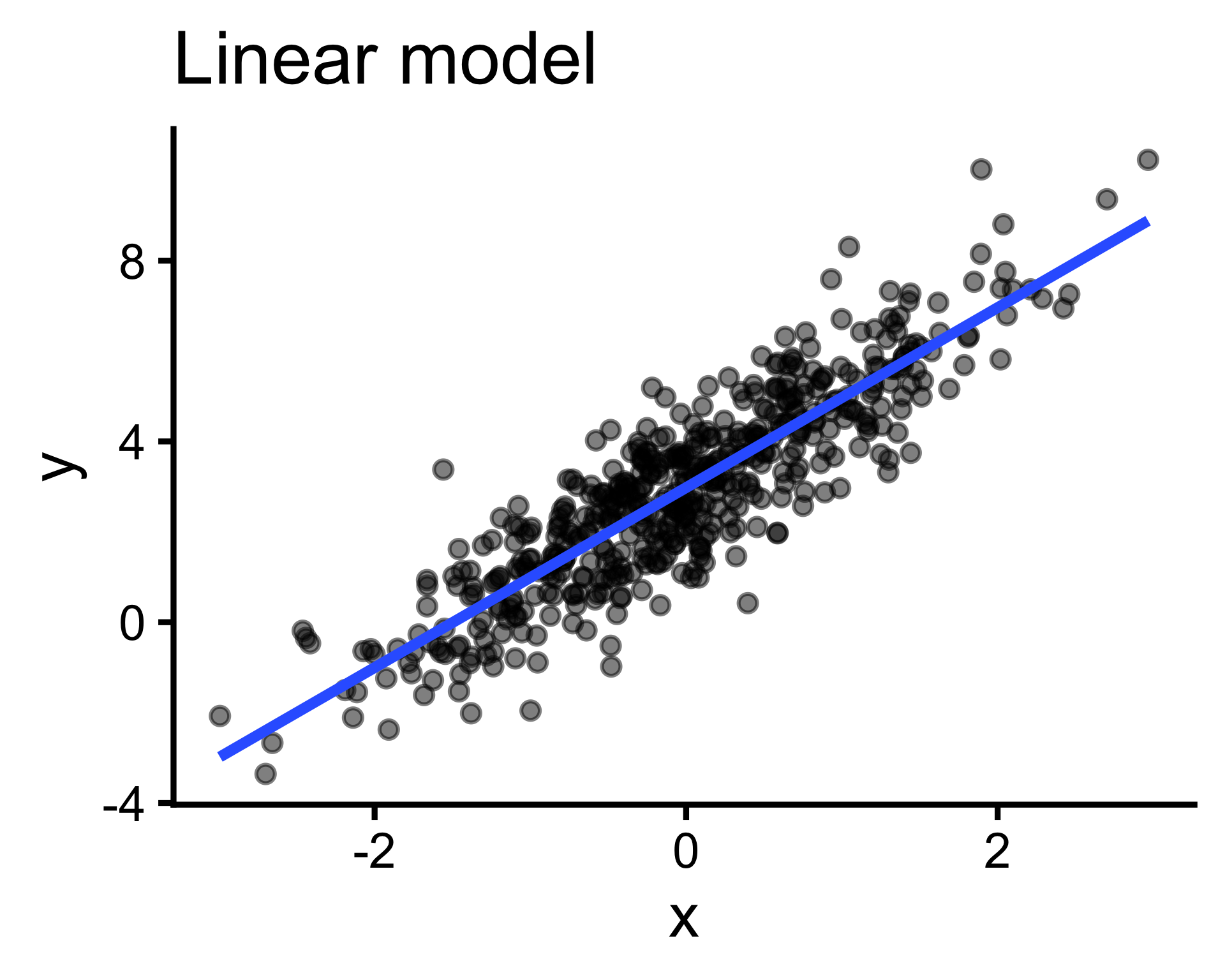 Even more specifically — formally, the model specification — we are fitting the linear model \(y = ax+b\), where \(a\) and \(b\) are free parameters.