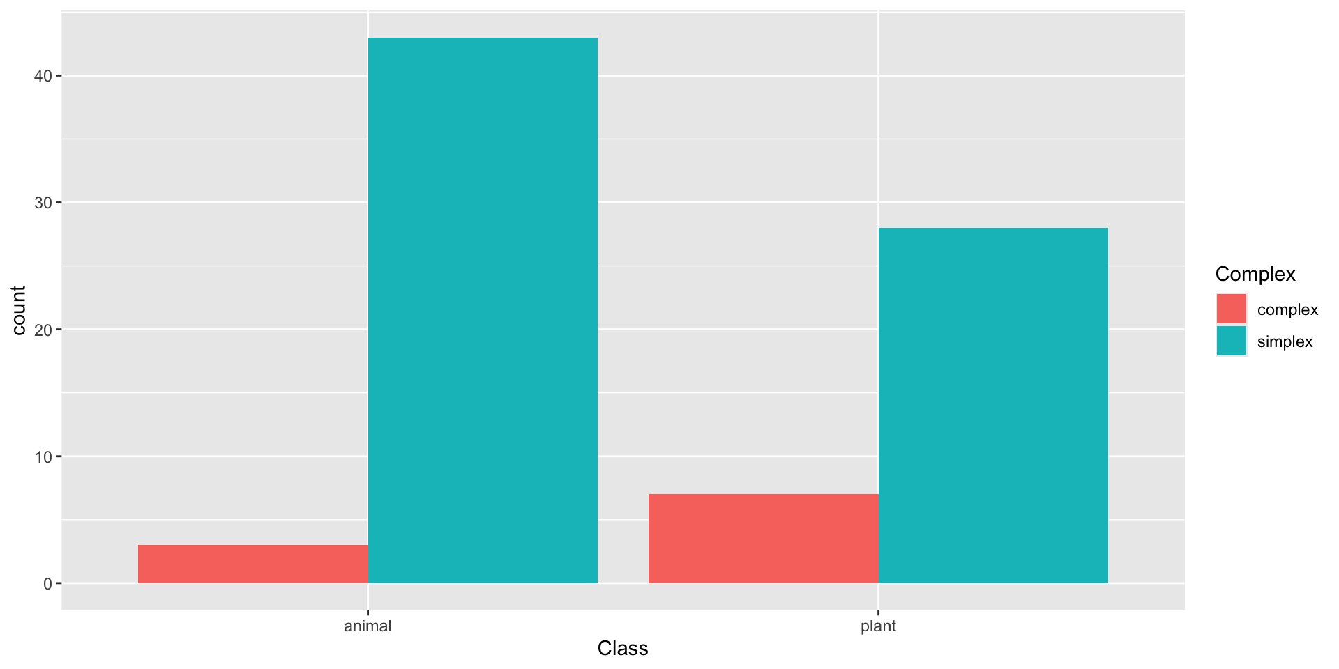 $ Class : Factor w/ 2 levels "animal","plant": 2 1 2 2 2 2 1 2 1 1 ...