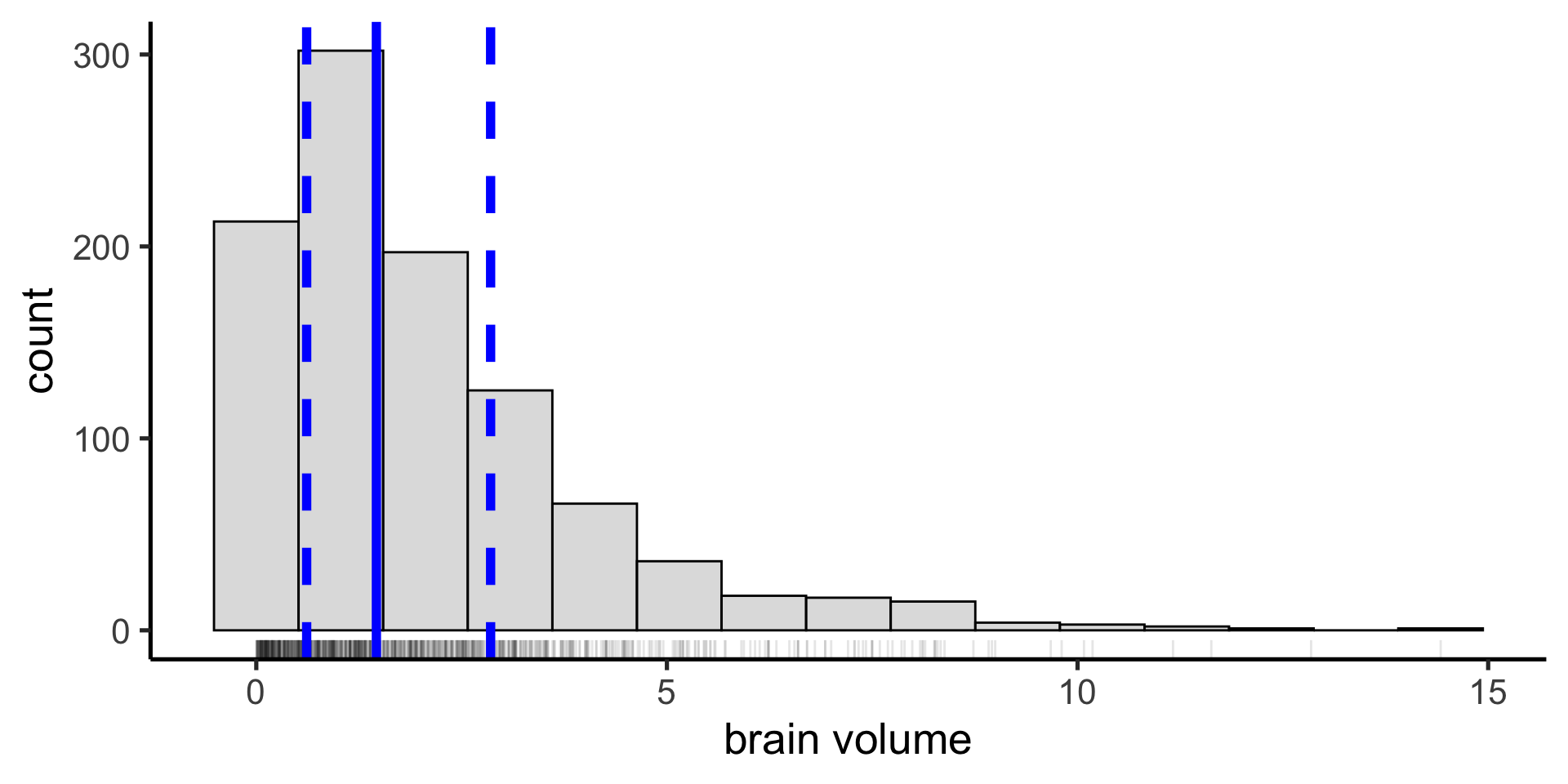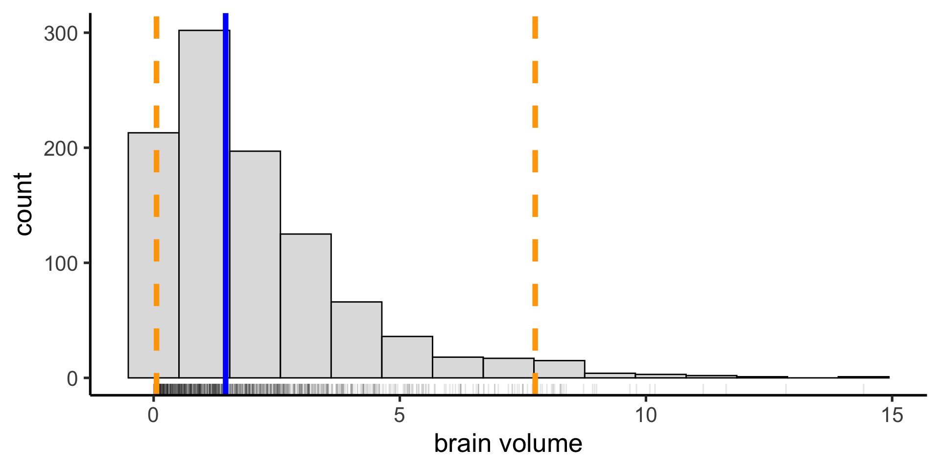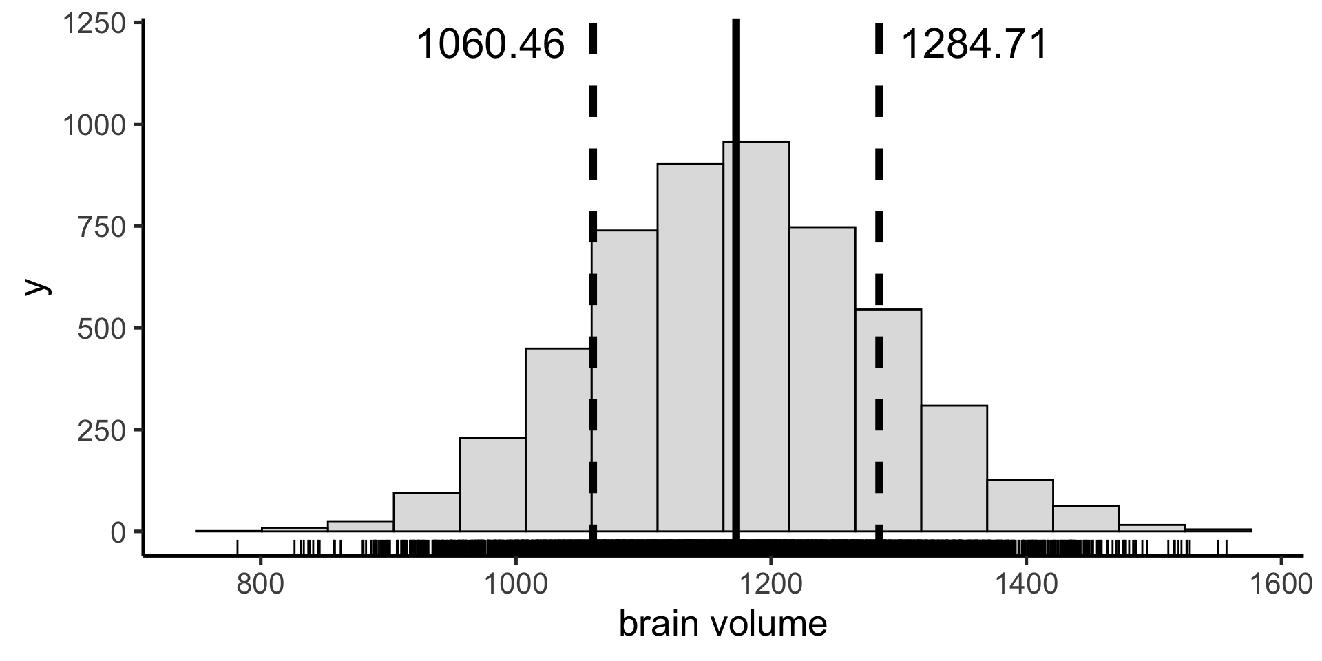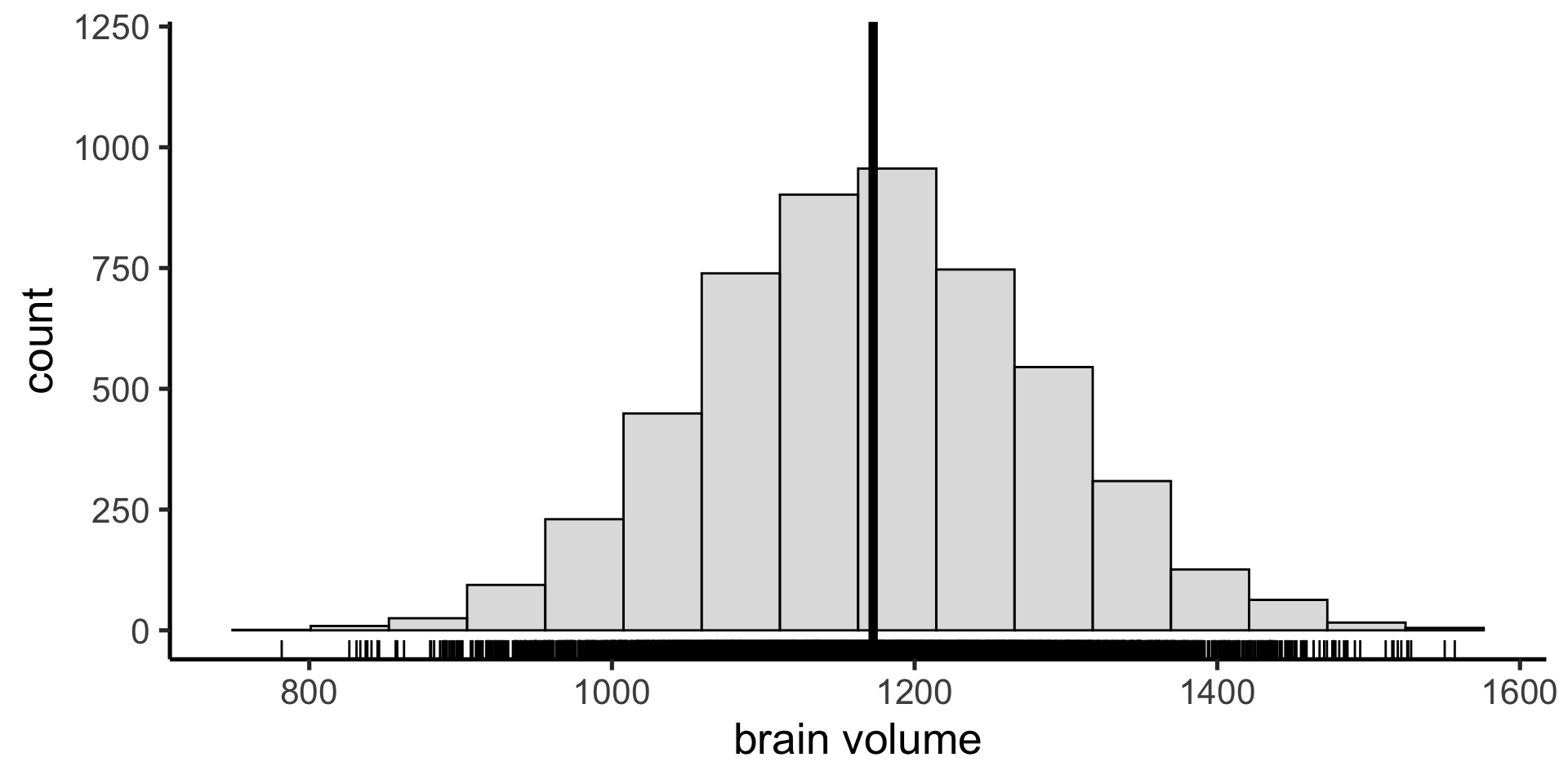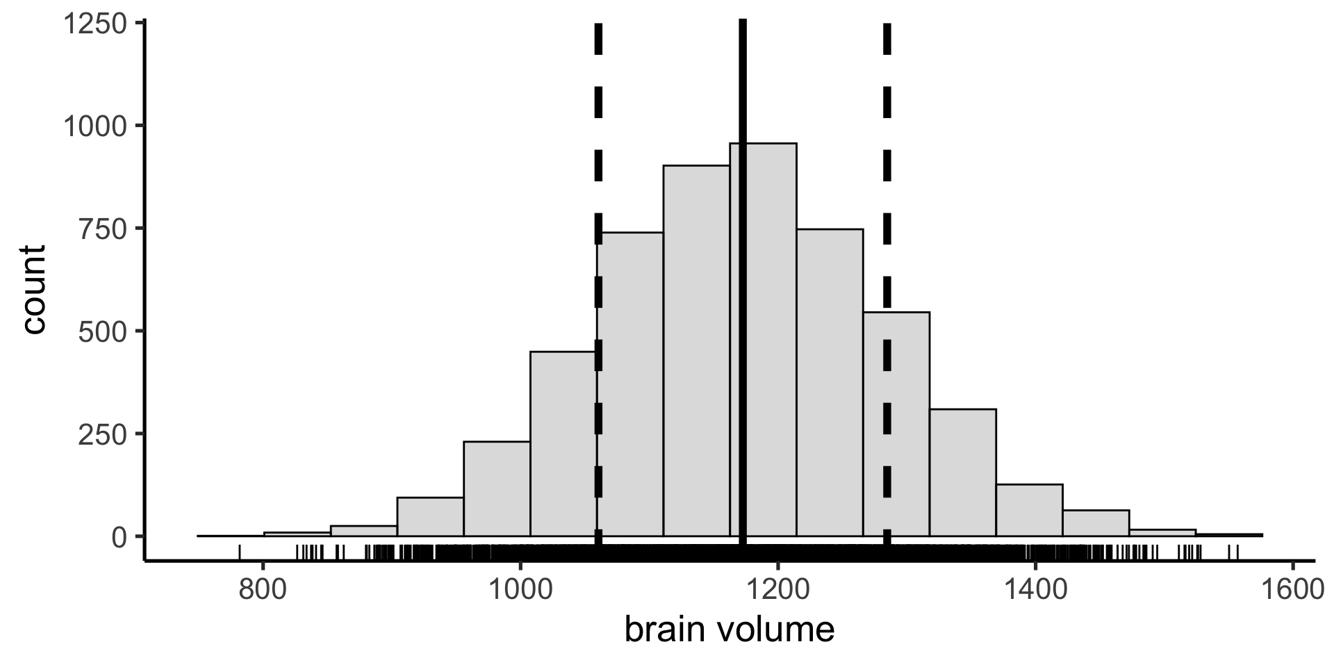 Suppose we measure a single quantity: brain volume of human adults (in cubic centemeters)