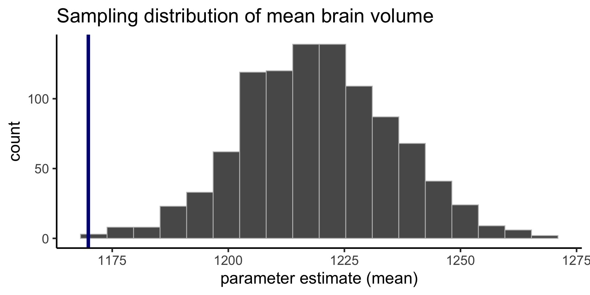 But we only have a small sample of the population: maybe we can measure the brain volume of 100 students
