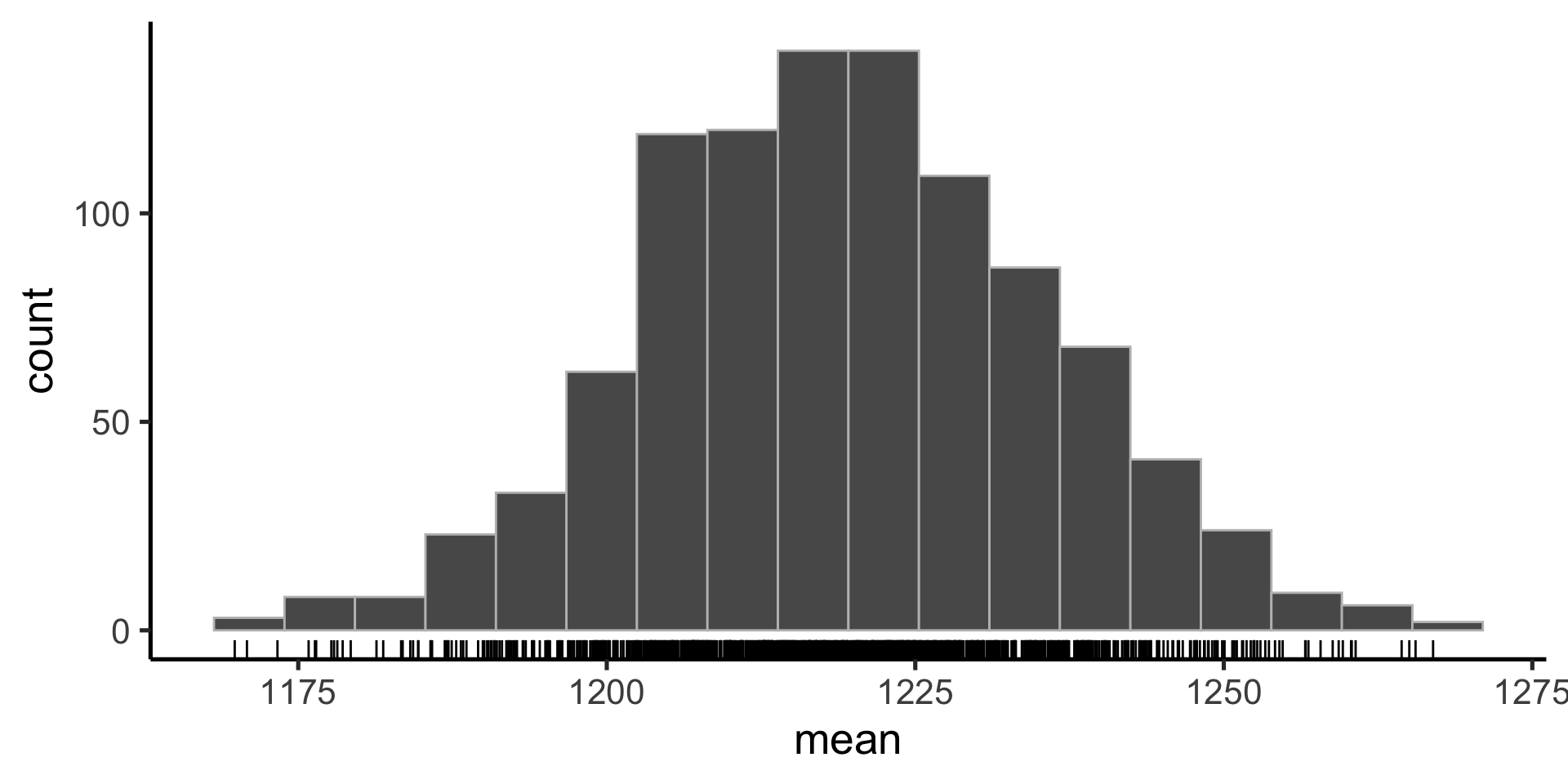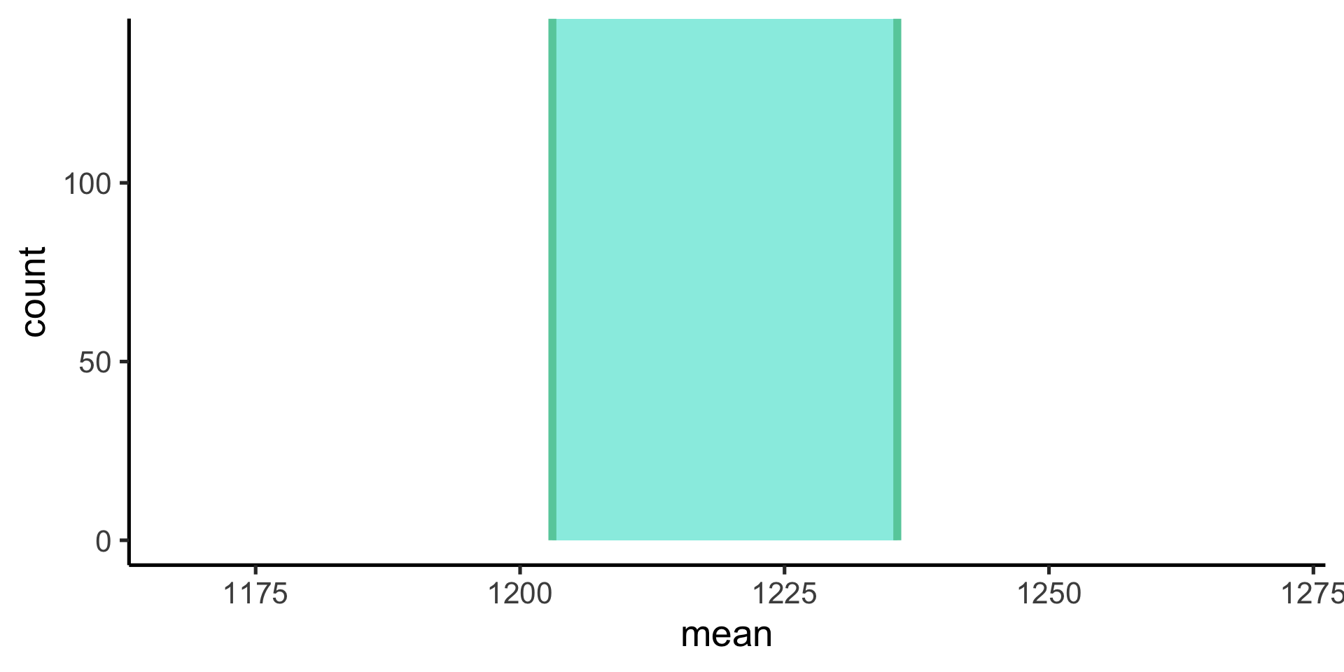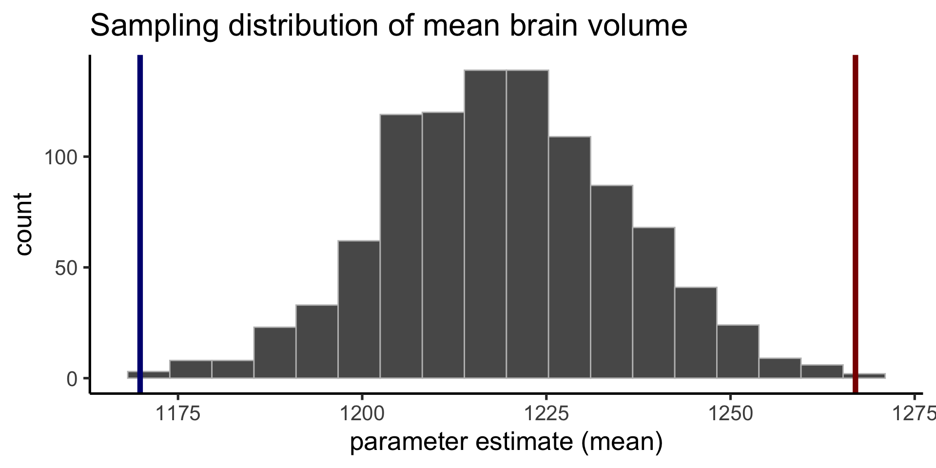 Suppose we collect a sample of 100 subjects and find their mean brain volume is 1200 cubic cm and sd is 100: