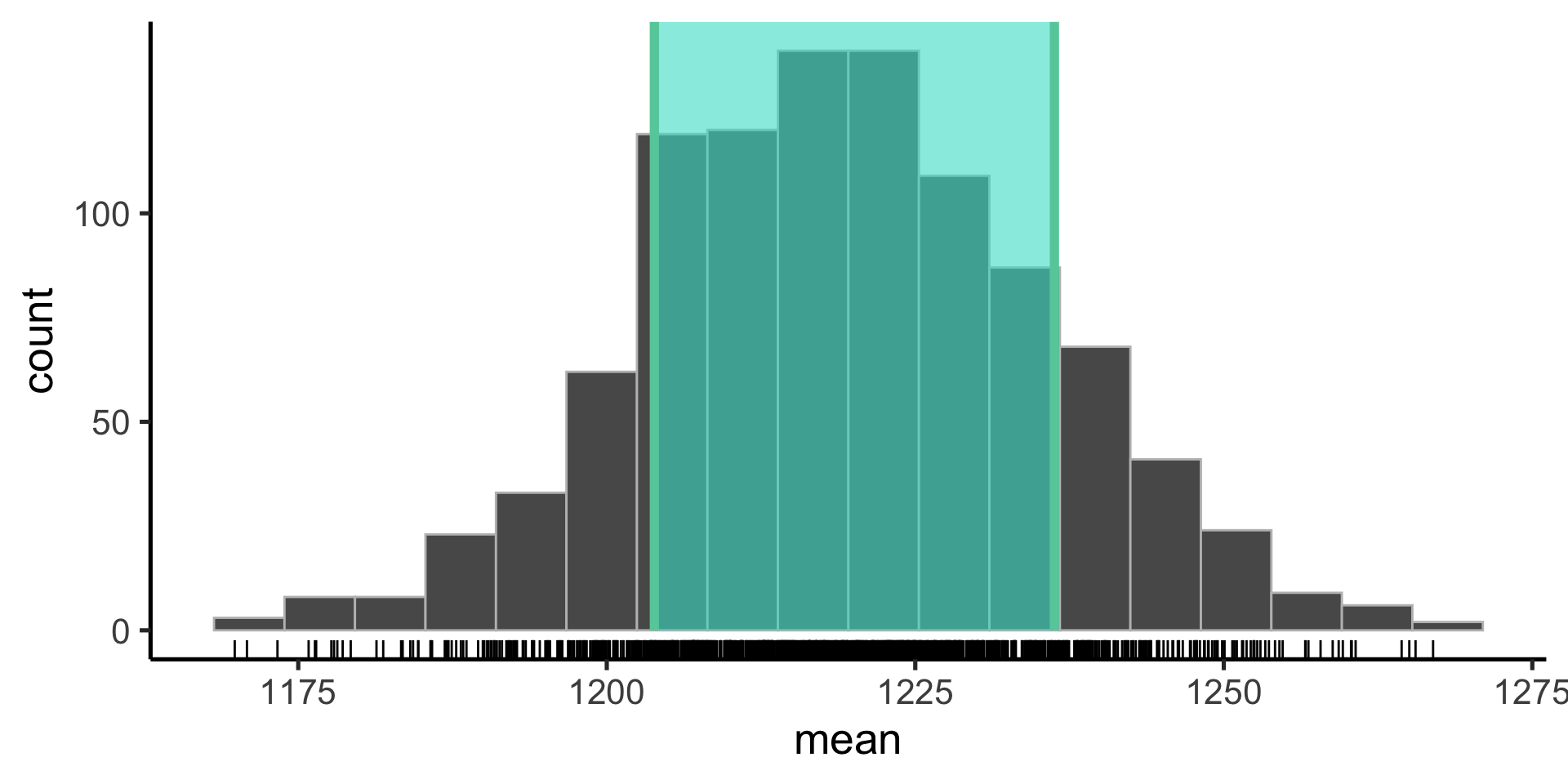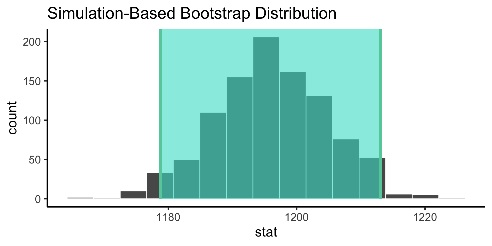 ciQuantify the spread of the sampling distributon with get_confidence_interval, and set the type to percentile for confidence interval